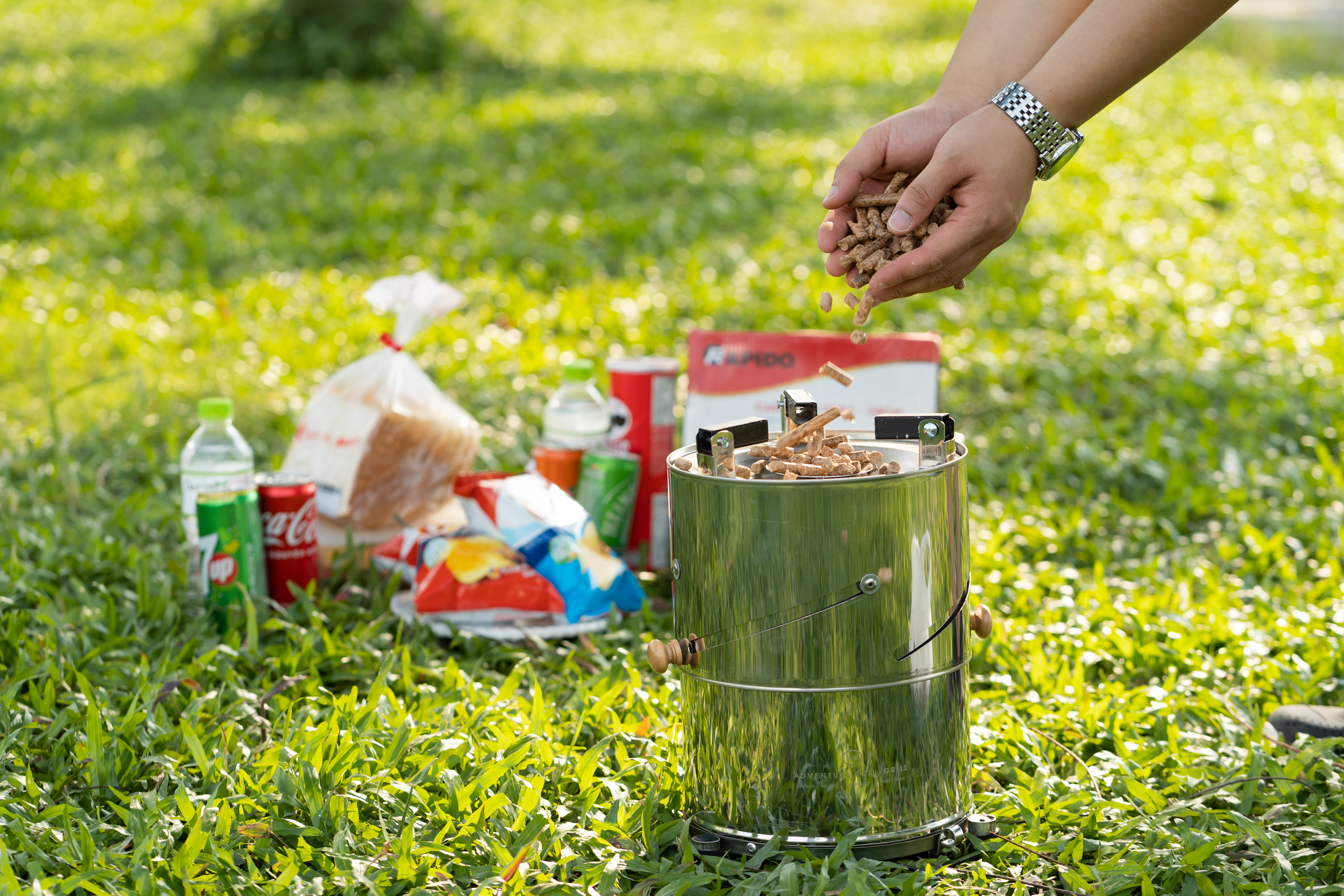 Adventure Boil-Grill is fueled by wood pellets - the world most popular source of renewable energy. In case the wood pellets are not available, the Adventure Boil-Grill can be fueled by any branches, wood chips around you.
